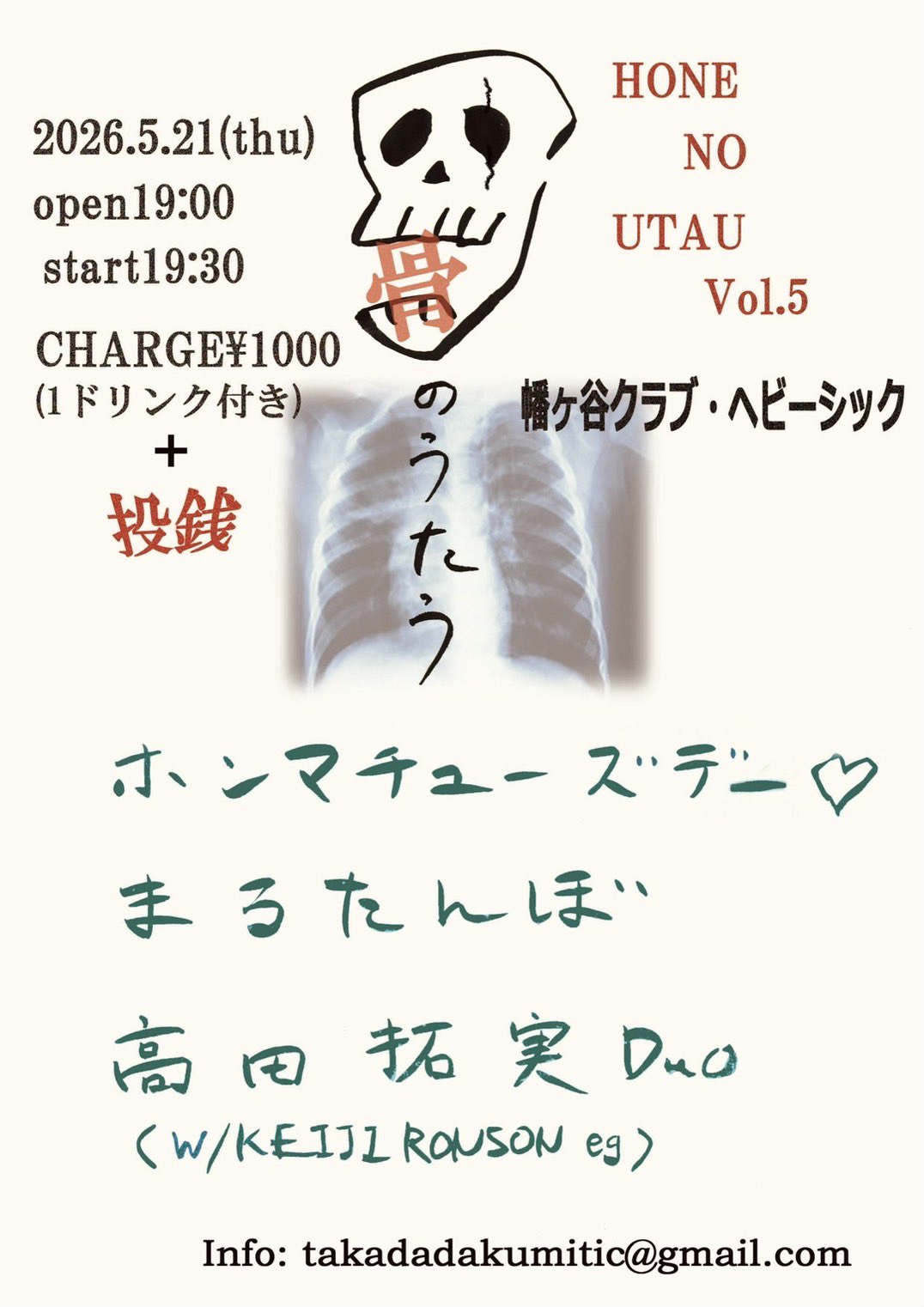 骨のうたう 其の五 2026年5月21日(木) 幡ヶ谷クラブ […]