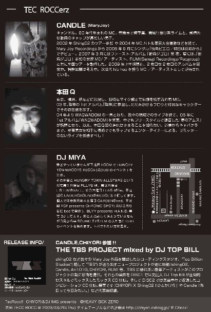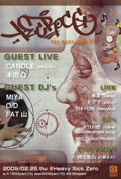 毎月第4木曜日レギュラー!!中央線HIPHOPを発信し続けるTEC ROCC。Mary Joy Recordingsより遂にファースト・ソロ・シングルを発表したCHIYORI(チヨリ)のライブは毎回、多くの反響を呼んでいる。さらに、Libra Recrodの若手ラッパー、麻暴、少佐、ドグマのライブも要・check it!!